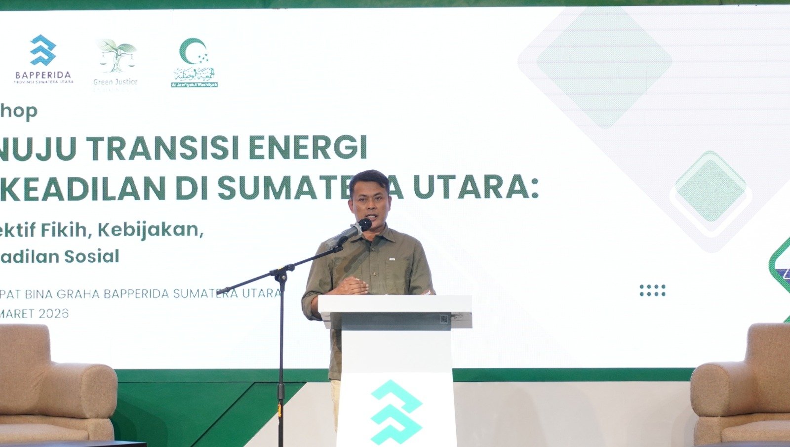 Dalam workshop yang diinisiasi Green Justice Indonesia bersama Al Jam’iyatul Washliyah Kota Medan dan didukung Pemerintah Provinsi Sumatera Utara, ia menekankan bahwa proses transisi energi tidak boleh hanya menjadi proyek teknokratis.